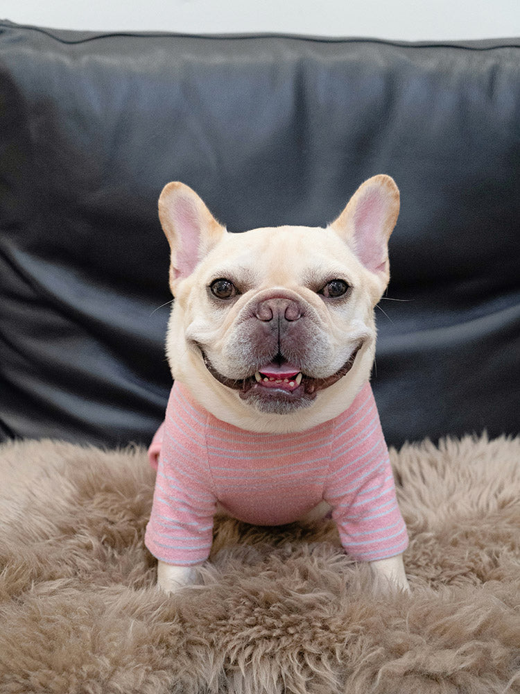 We recommend starting with our Dog Pajamas Collection to keep your Frenchie’s tummy warm and cozy, especially during cold nights.