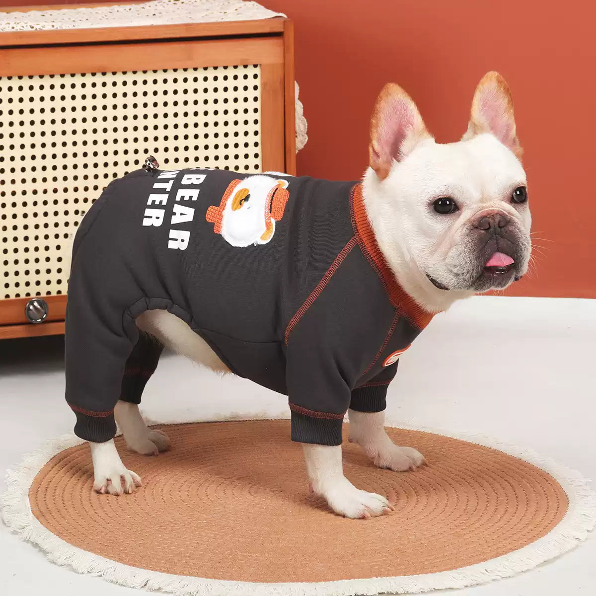 We recommend starting with our Dog Pajamas Collection to keep your Frenchie’s tummy warm and cozy, especially during cold nights.