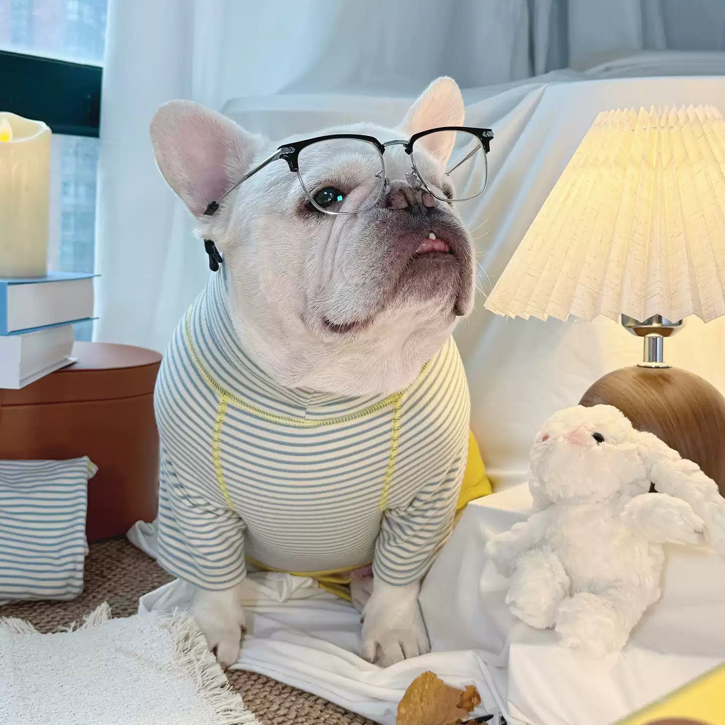 We recommend starting with our Dog Pajamas Collection to keep your Frenchie’s tummy warm and cozy, especially during cold nights.