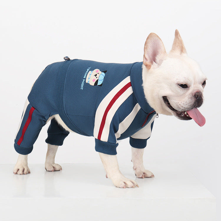 We recommend starting with our Dog Pajamas Collection to keep your Frenchie’s tummy warm and cozy, especially during cold nights.