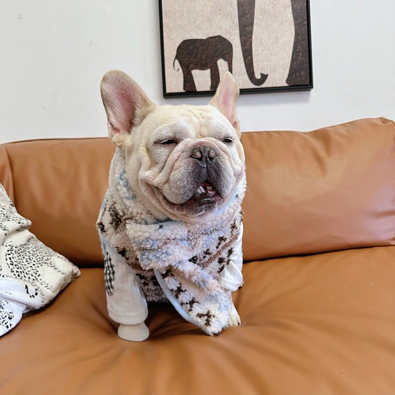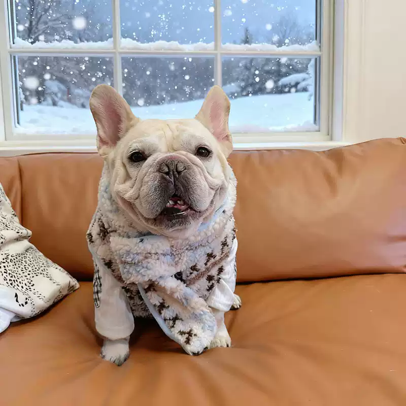 We recommend starting with our Dog Pajamas Collection to keep your Frenchie’s tummy warm and cozy, especially during cold nights.